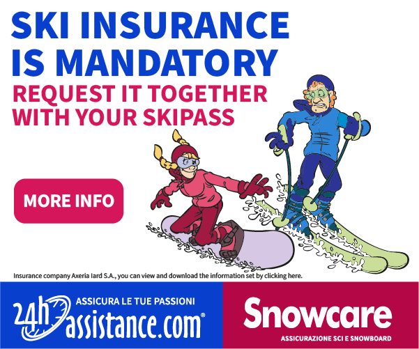 | Toute société qui ne bénéficie pas localement d’une couverture d’assurance pour les titres de transport valables dans une seule station de ski peut, à la demande expresse du client, étendre l’ASSURANCE « SNOWCARE » au tarif de € 3,00 par jour, tarif réduit à € 1,50 pour les enfants âgés de moins de 8 ans, aux acheteurs de forfaits pluri-journaliers régionaux et internationaux. Le service de premier soin sur les domaines skiables est payant: le coût de l’intervention est de € 200,00.